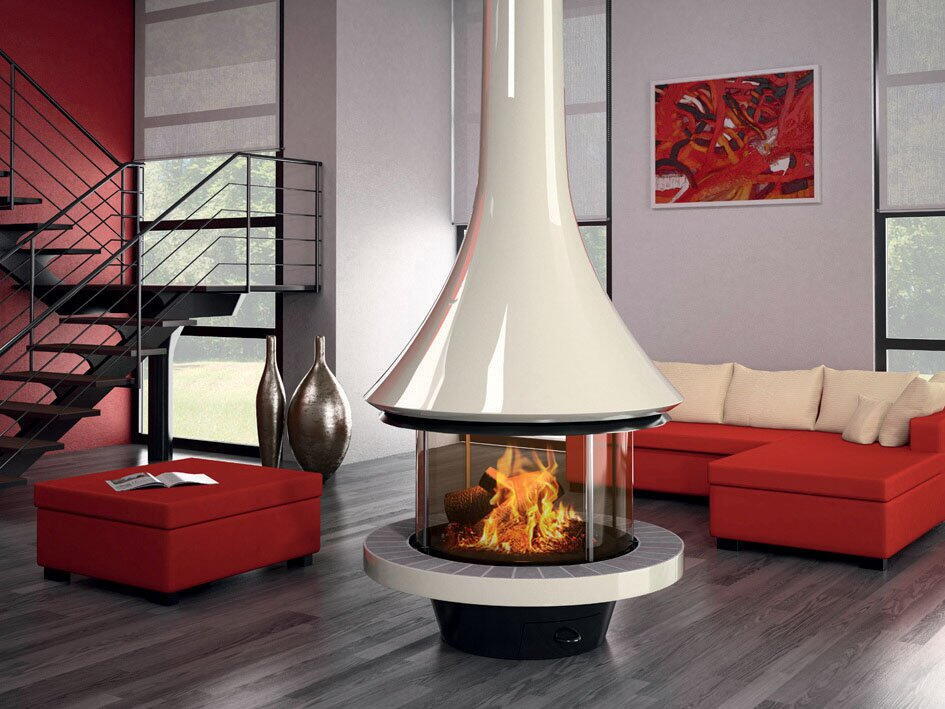Дровяной камин EVA 992 центральный лакированный со стеклом и стандартным основанием