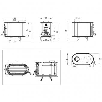 Высота, см 48 Ширина, см 30 Глубина, см 56 Мощность, кВт 5 Материал Чугун Диаметр дымохода, мм 115 Вес, кг 55 Отапливаемая площадь, кв.м. 50 Гарантия (лет) 5 -